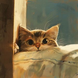 «A cartoon of three mischievous cats, making faces at at the came...»
