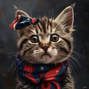 «A cartoon of a mature cat gazing into the camera while sporting...»