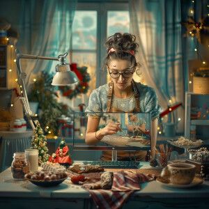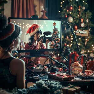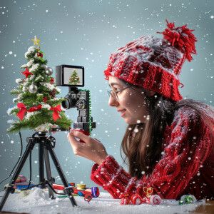 «Photorealistic image. Woman making YouTube video of herself, mak...»