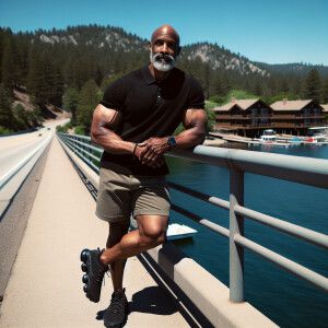 «Describe an African-American man in his mid-50s with a sleek, ba...»