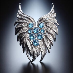 «Exquisite sterling silver angel wings pendant with blue diamonds»