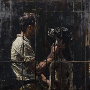 «Una jaula con un perro peleando»