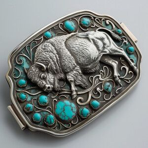 «Describe the Reeves 1601 sterling silver trophy buckle featuring...»