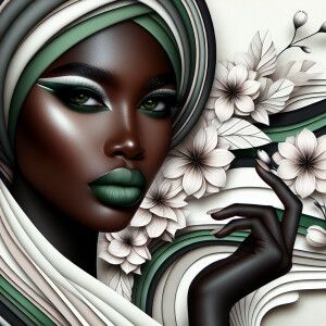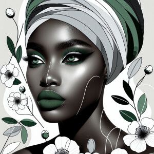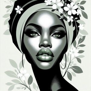 «A black woman aged 30 with short curly hair lying on a bed and a...»
