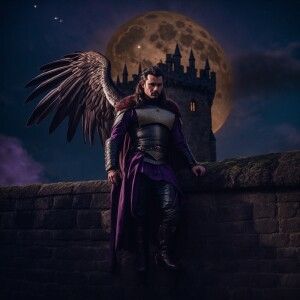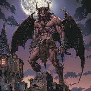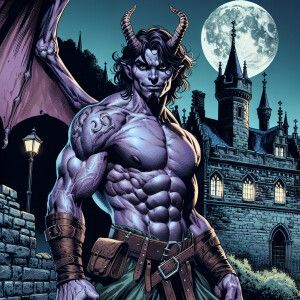 «comic style, 8k, a muscular gargoyle with lavender skin, long da...»