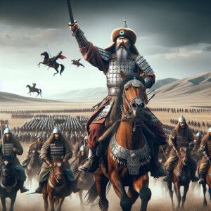 «Create a sketch of Genghis Khan leading the Mongol invasion»