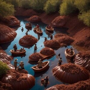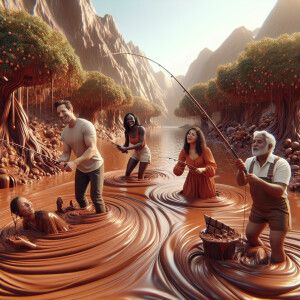 «Everything chocolate, chocolate people fishing in a chocolate po...»