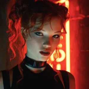 «Cyberpunk romance redhead female supermodel»