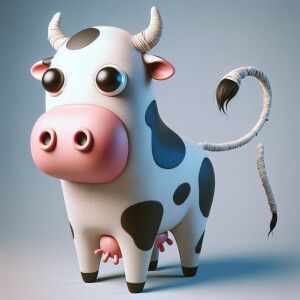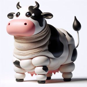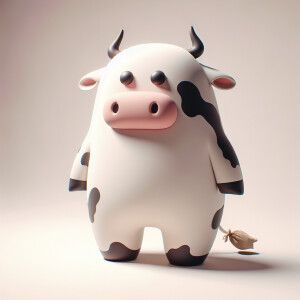 «Envision a whimsical scene where a cow is standing on two legs l...»