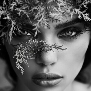 «Create an image of a stunning woman adorned with flowers in her...»