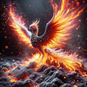 «A phoenix rising from the ashes, photorealistic, hyperornate det...»