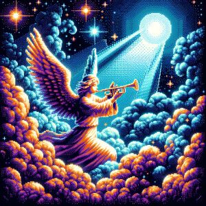 «An angel playing a trumpet in the clouds cover, ultra-detailed p...»