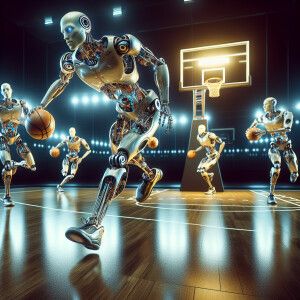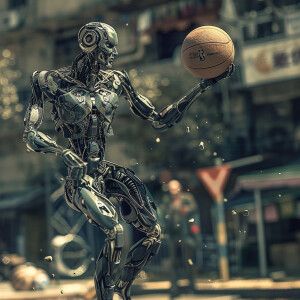 «Cyborg's playing basketball, HDR, masterpiece, ultra-detailed,...»