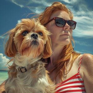 «Photorealistic high resolution image. Light ginger haired woman...»