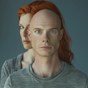 «Photorealistic high resolution image. Light ginger haired 44 yea...»