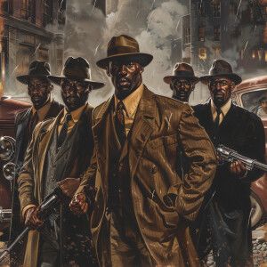«**Visual Prompt for a Group of 1940's G-Men Led by Delroy Lindo:...»