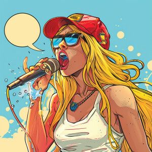 «female cartoon character with yellow long hair, sunglasses, and...»