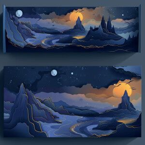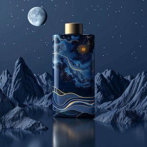 «Luxurious product package, bottle, mountains and sea and univers...»