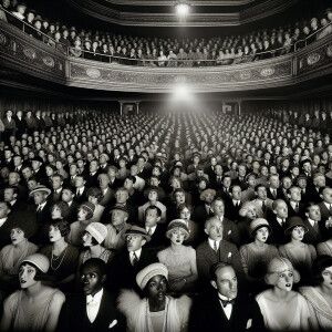 «A packed theater in the roaring 1920s, filled with an enthusiast...»
