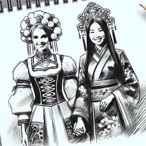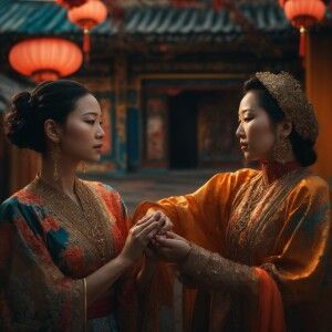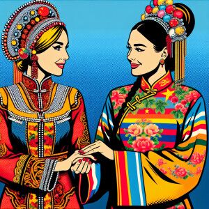 «One woman from russia holding hands with one woman from china, b...»