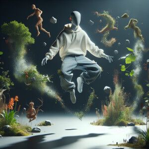 «Create a captivating image of a slender figure with a buzz cut h...»
