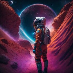«a girl in astronaut suit, journey to the center of the galaxy»