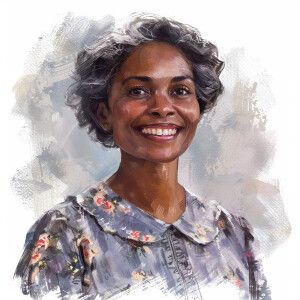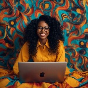 «black women with lone black wavy hair wearing glasses, bright sm...»