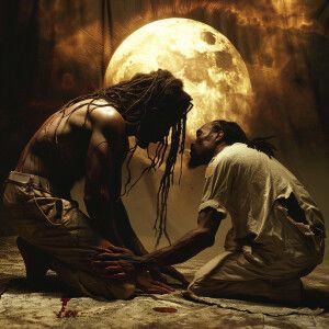 «African-American demon man handsome on his knees and Black Jesu...»