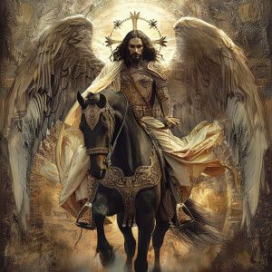 «Middle Eastern Jesus Christ with wings on a horse»