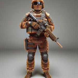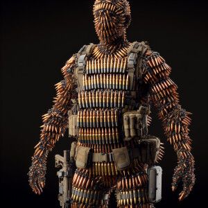 «Human figure made from bullets, 8K resolution HDR, ultra-detail...»