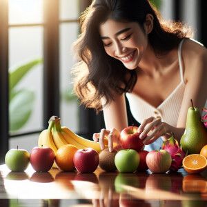 «screen showing a series of vibrant, fresh fruits being placed on...»