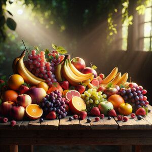 «show a series of vibrant, fresh fruits being placed on a table.»