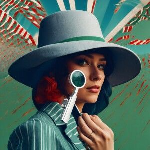 «white background gray female silhouette with detective hat holdi...»