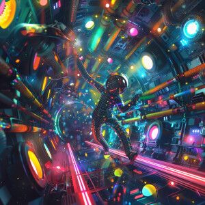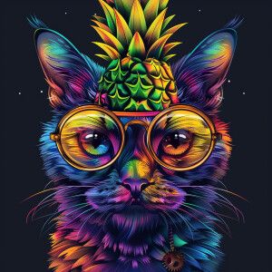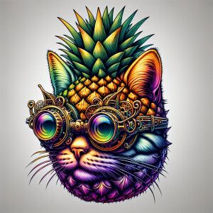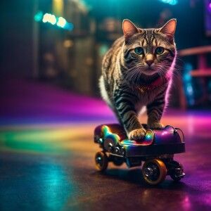«A cat rollerskating with steam punk vibes and rainbow colors»