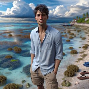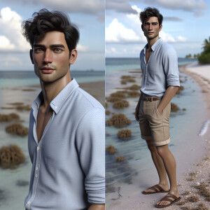 «Create a 3D image of a handsome young man of Filipino and white...»