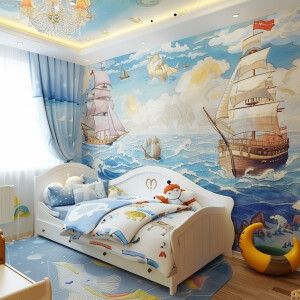 «Wallpaper for a children's room featuring a single image of mari...»
