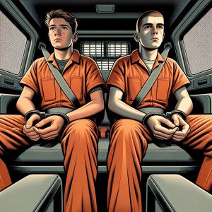 «Two Caucasian males, aged 13 to 15, hands behind their back. The...»