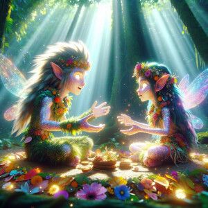 «cute young glowing glittery male and female elf fairy earth trol...»
