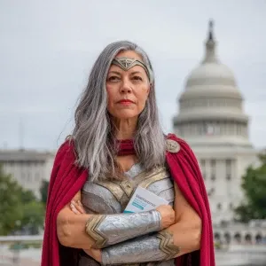 «Illustrate a scene featuring a powerful plus-size woman with sho...»