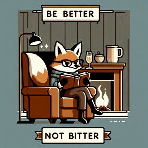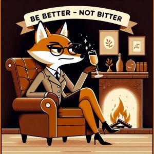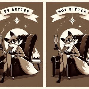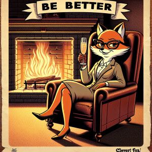 «A studious female fox sitting in a leather recliner. Toasting wi...»