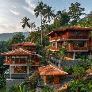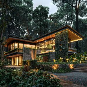 «3 homes in a tropical forest in modern Kerala architecture with...»