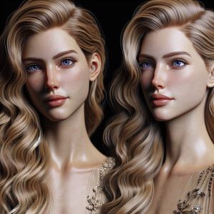 «Create a full-length portrait of a woman with flowing blonde hai...»