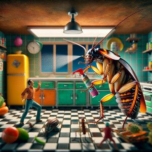 «A hyper-realistic and detailed photo of a cockroach getting its...»