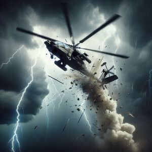 «An Army helicopter struck by a missile, the helicopter is sinkin...»