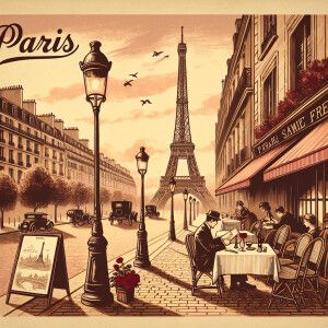 «A vintage travel poster of Paris with the Eiffel Tower and roman...»