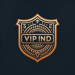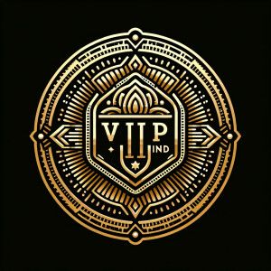 «The text is 'VIP IND', BACKGROUND BLACK, BADGE GOLD»
