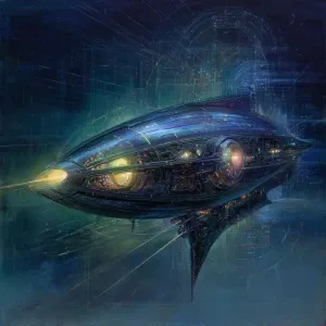 «In the depths of a dimensional void, a bioluminescent scifi ding...»