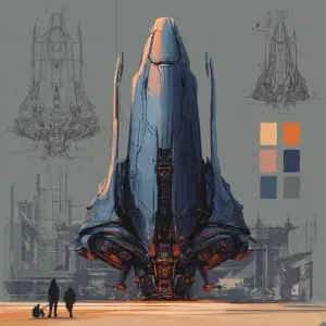 «Create a character design sheet of a massive cyberpunk mothershi...»