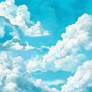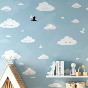 «Детские обои с рисунками облаков и птиц в стиле минимализм»
