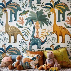 «Decorate your child's room with adorable dinosaur-themed wallpap...»